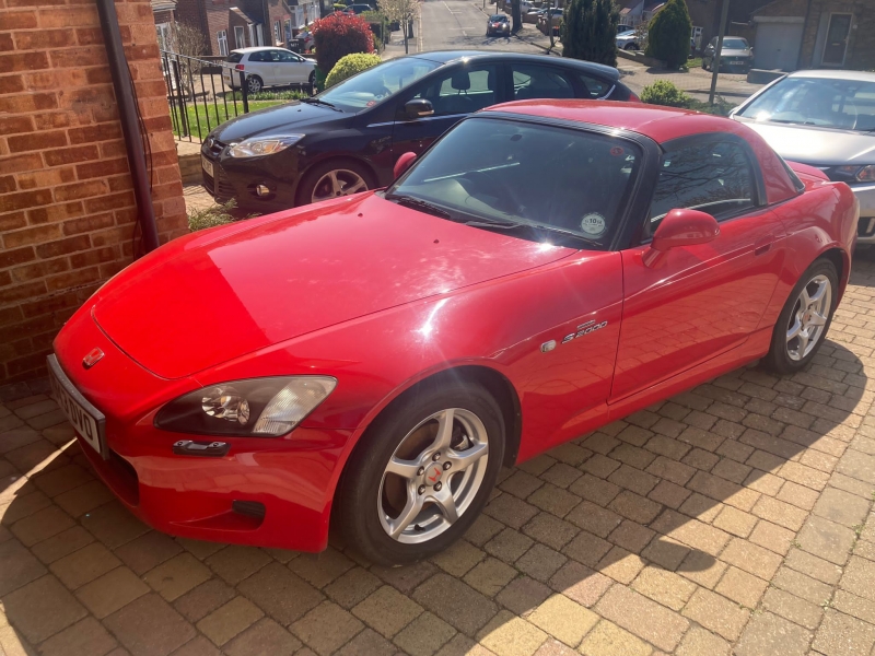 S2000 in New Formula/Ascari red. Black leather interior.